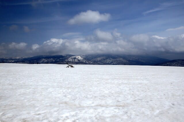 このところ低山・里山下見ばかりでしたので体力がすぐ落ちる・・・高齢者は辛い😅ので、いつか残雪期に行ってみたかった大白森を目指して歩いてきました。いつもはこの時期のルーティンで田代平-乳頭山方面に出向くのですが、本日は逆方向の小白森山-大白森方面へ。蟹場温泉を基点にピストンの予定です。ちょっと長めの歩きでしたが、残雪を楽しめましたし珍しいテーブルマウンテンからの眺めを見ることができたので大満足です🎵