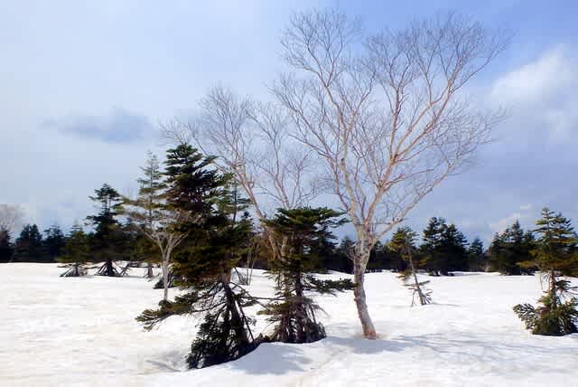 再び小白森山で休憩~!!仲の良さそうなオオシラビソとダケカンバが寄り添う😀