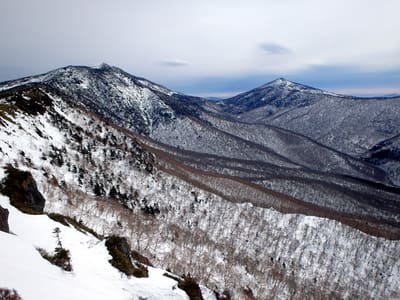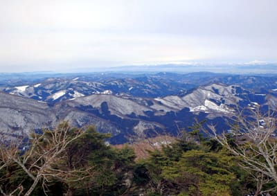 志波三山とその奥に雄大に佇む和賀山塊。高曇りなので意外に遠望が利く