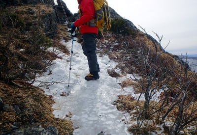 ニセメタボ岩はデンジャラスゾーンだった。氷を避けて通過するBONZUさん