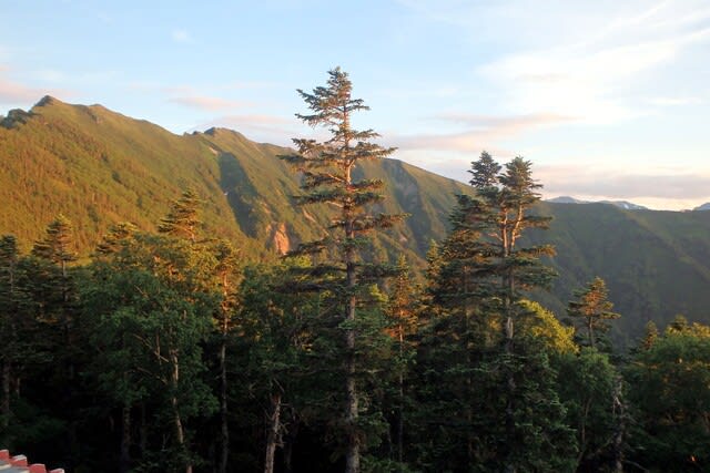 そして美しい夕暮れ。さっき通過した爺ヶ岳と種池小屋も見えてる