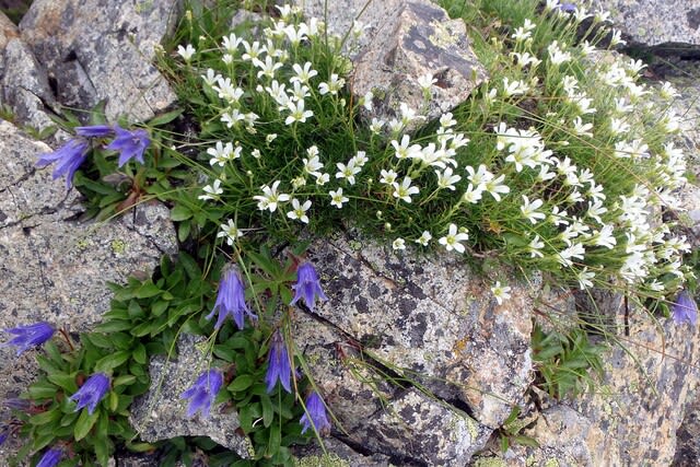 タカネツメクサとチシマギキョウのコラボ。かわいいね
