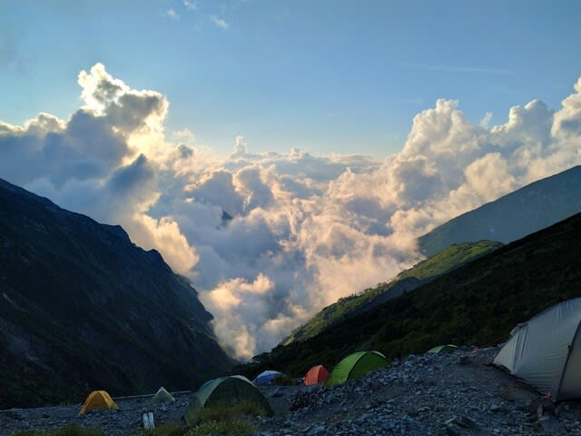 空けて核心の日。今日百名山2座を目指す。早朝4時出発。途中のご来光と雲海