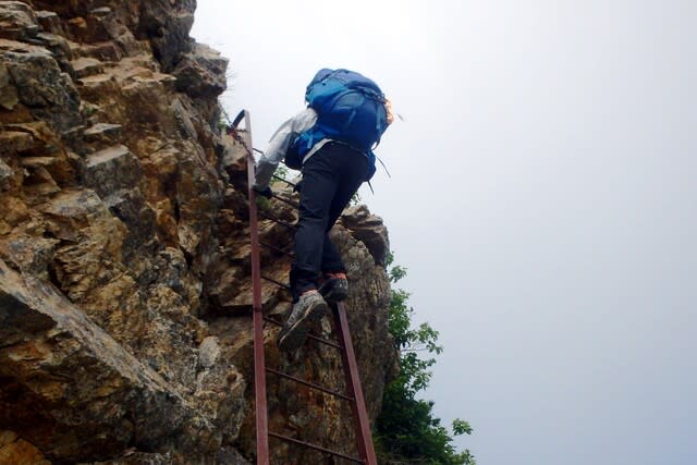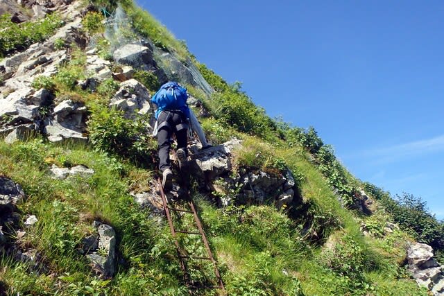 キレットの最低鞍部のハシゴが待ってる