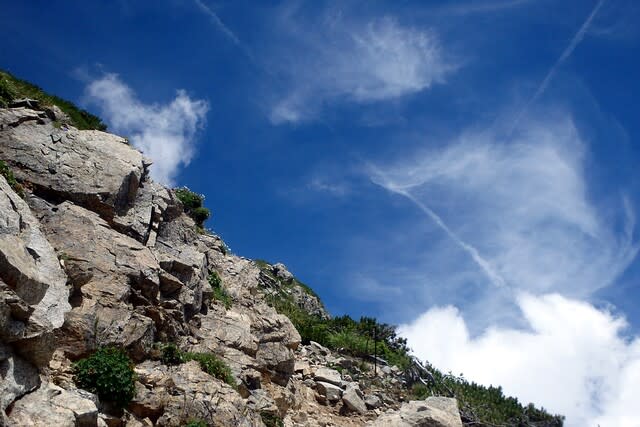 ザレ場。気を付けていても小さい石を落としてしまう。こんな時は「落ー!!」