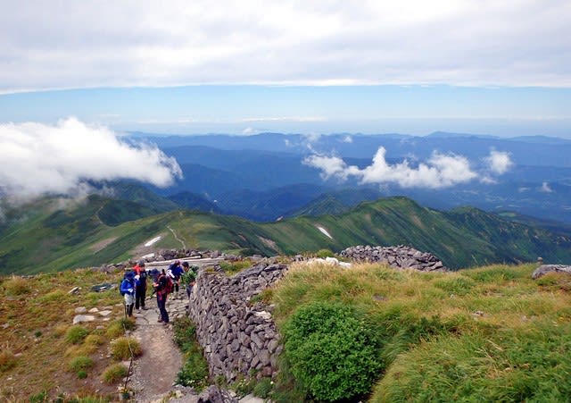 おお~天候回復。これから歩く稜線と月山山頂部。なんと素晴らしい