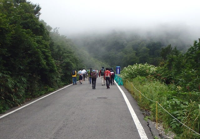 相当な数の登山者が一斉にリフト乗り場へ。天気は今のところガス。台風から遠い日本海側は悪くない筈だが・・・