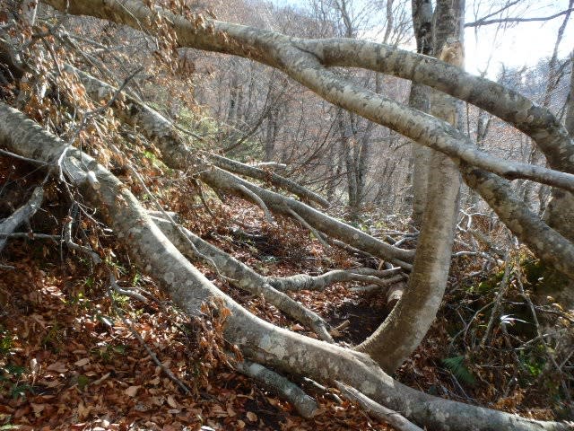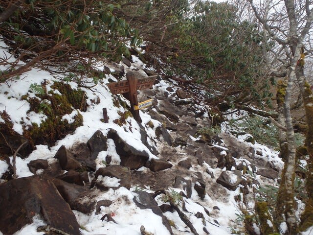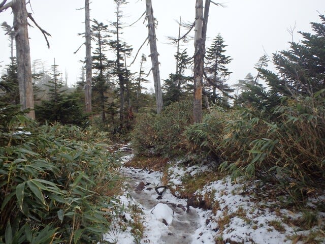 そんな景観も間もなく終わり剣ヶ峰直下の樹林帯へ