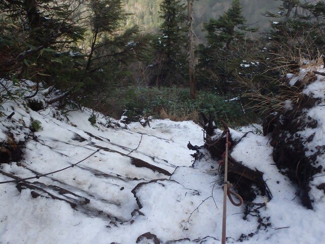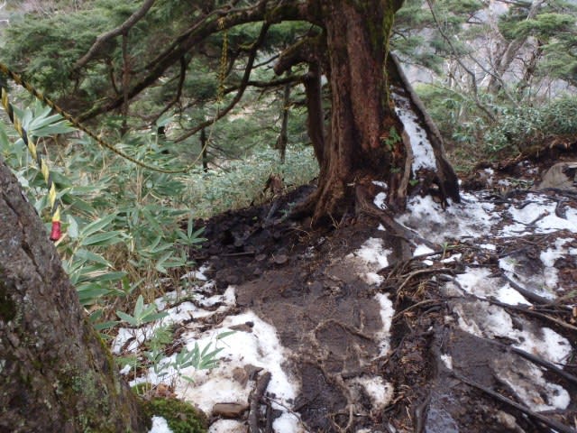 やっぱりな。岩と泥と雪と木の根っこ。地獄下りだった