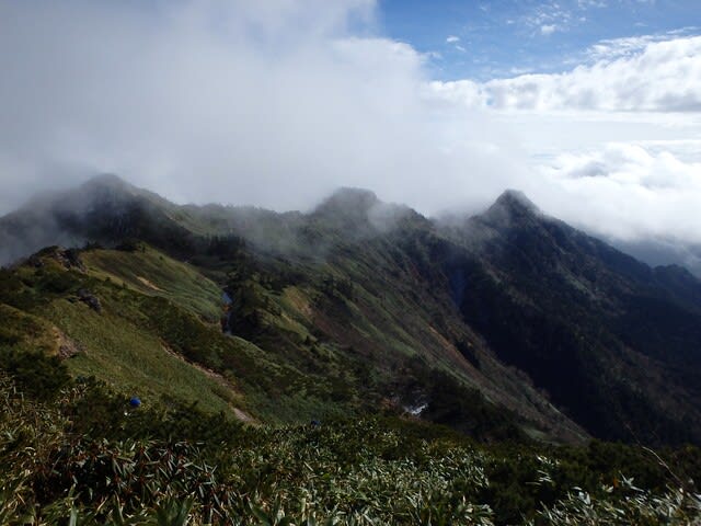 ・沖武尊から剣ヶ峰山への稜線は秀逸です。息を呑みます