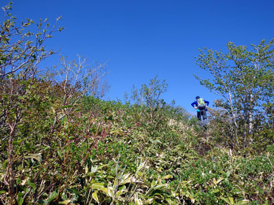 草原を過ぎると平庭岳への直登が始まる。なかなかの登りである