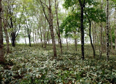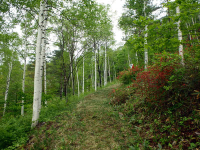 標高が上がってくると、白樺とダケカンバの混在地帯。親戚同士なかなか珍しいかも