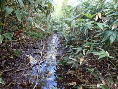 今度は水浸しの道に変化。ここは安家川の源流だそうだ