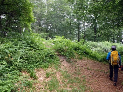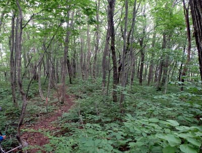 路にはなっているが草や笹が旺盛な感じ。では