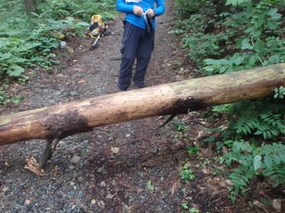 最初の倒木。これは円滑に処理終了