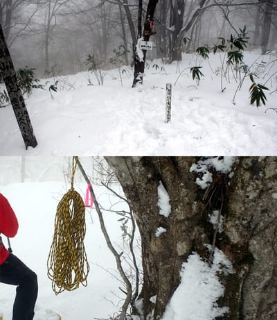 頂上付近まで壺足のトレースあったが、このロープを持ってきた人に違いない。たいが~さんご苦労さんでした