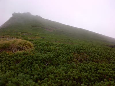 この日は気合を入れて鬼ヶ城から登るつもりであったが、網張まで行ったものの残念ながら強風のためリフト運行見合わせ。管理人さんと情報交換をし、雨は降っていなかったので、比較的風が穏やかそうな御神坂に移動した。しかし、5号目の大滝展望台を過ぎたあたりからガスってきて、終盤は雨というなかなかの山行となってしまった。なのでこの日のピークは9号目とし、ご飯食べて下山する。岩手山で雨に降られたのは初めてだ。レインウェアもホームセンターで買った安いポンチョだったので、身体のかなりの面積を濡らしてしまった。いろいろ反省ばかりの登山だったが、極めつけは携帯カメラの浸水?による電源切れ。セットアップする際に何故かパスワード入力が10回はじかれ初期化せざるを得なくなり、それまで撮っていた画像がぶっ飛んでしまう。結果鬼ヶ城分岐付近の5枚しか写っていない。もちろん下山中は写真撮る気力も無かったし・・・涙