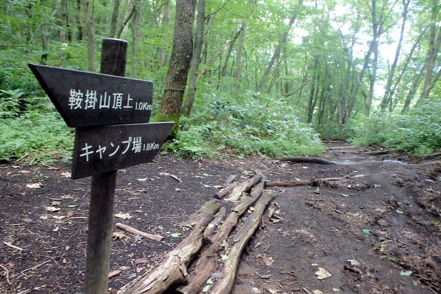 キャンプ場登山口からスタート。すでに蒸しあっつ