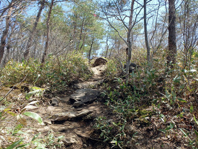 カタクリさん地帯を抜けると、ちょっと急な岩場があって、