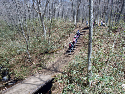 コーヒー飲んで、一服しての帰り道。登山者いっぱい連なってる。いい季節だもんな~