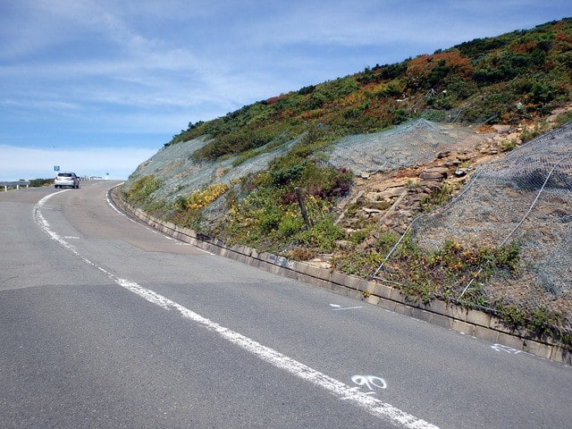 九十九折に走るエコーラインを何度か突っ切って直登するルート。途中料金所がある