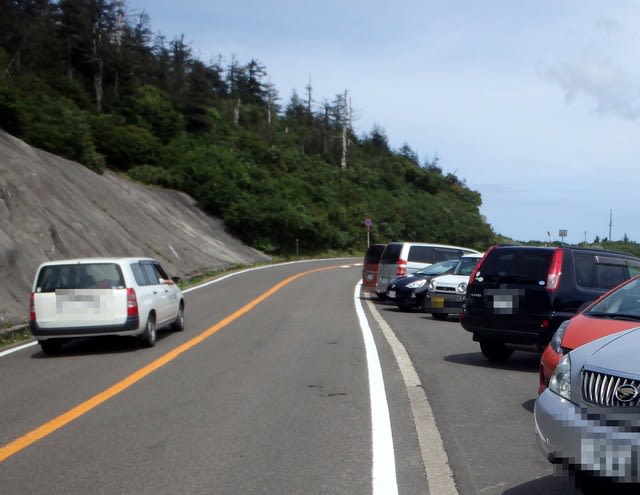 で、車に戻ってきた。この停車してある車のほとんどは南蔵王に向った人たちのようだ