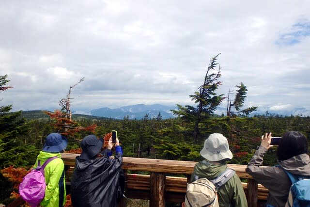 すっかりと雨が上がり日差しと景色が戻って来た。歓声が上がる。この後忙しくて写真は撮れなかったけど、八幡沼やガマ沼は綺麗に見えてました
