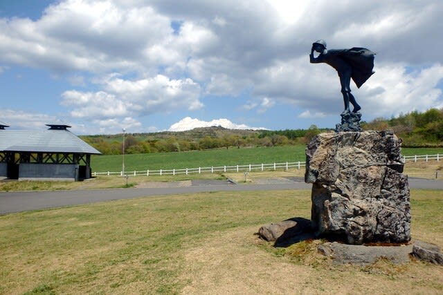 有名な風又三郎モニュメント。賢治色の強い場所。そして奥が種山(物見山)
