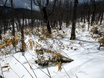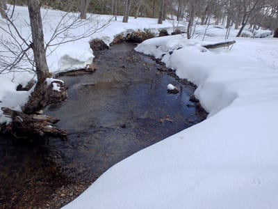 お陰で残雪の湿原を歩くことが出来た。いい雰囲気。ミズバショウとか咲くんだろうね