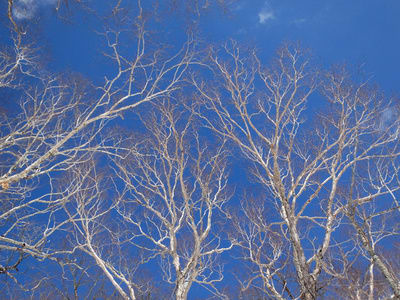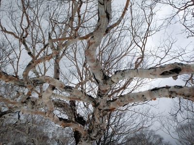 一体は太い矯化ダケカンバの林。どこか神妙な雰囲気
