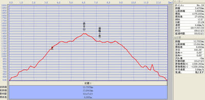 ■GPSログ(距離:13.04km、高度の上昇/下降:1209m/-1209m)