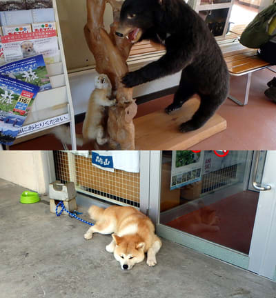 始発まで少々時間があったので館内見学。さすがマタギの町阿仁。随所に熊のオブジェ。秋田わんこは本物なのだ