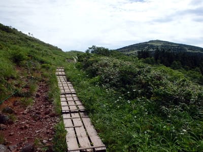 西に延びる登山道。湿原帯もあるね。でも今日はここまで
