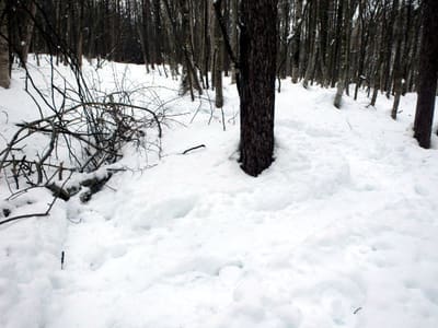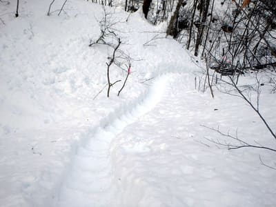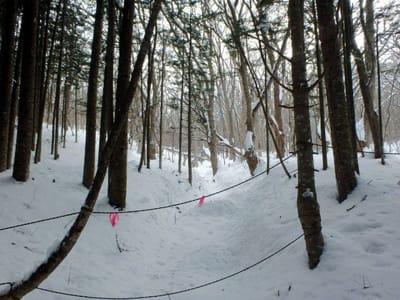 スキートレースの上を歩く