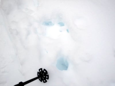 雪の中は青い。こういう年は雪が多いはずなんだけど