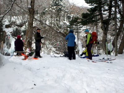 今度は山スキーヤーが集まってきた。聞けば赤倉岳に登るらしい。ついて行ってみたい衝動もあるが今日の目的はそれじゃない
