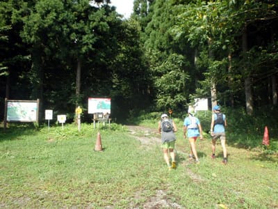 朝方の雨もひと段落。さて行くか。早速トレランの人達
