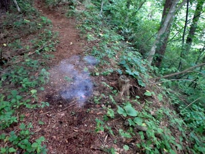 途中旧水無沢分岐の辺り激しくトイレと化した場所があったので容赦なく爆竹を鳴らす