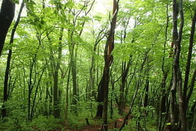 昨日も今日も朝方まで雨。お陰で仕事も無くなったのですが登る山もないのです。いつもの年ならばこの時期青空の下の爽快な山歩きが楽しみなんですが梅雨が早まったので近所の朝島山へ散歩です。でも週間歩行数ノルマ(最近万歩計を導入)が達成できませんでしたので戸塚森へ。それでも届かなかったので結局近所の堤防を走りました(笑)