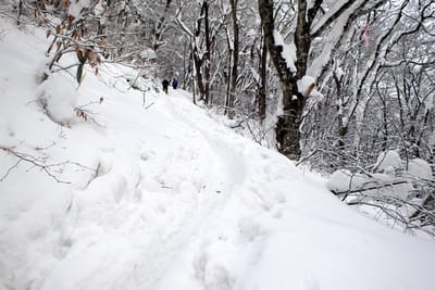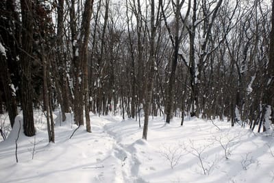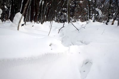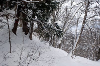 寒いですけど頑張って周回しました。ここ何年か小雪でしたが今年は平年並みにいい感じ。山頂部の雪庇は頂上まで繋がり歩いて行けます。カンジキあれば楽でしょう。一方、頂上~不動岳にかけての稜線は日陰で風も強くトレースはすぐにかき消され、吹き溜まりが行く手を阻みます。雪庇は高く細くなってますのでルート取りも困難。場所によって腰高ラッセルが必要で時間もかかります。スノーシューでも大腿部まで沈む感じ。よって周回は時計回りがよいでしょうが推奨はしません。雪が圧縮し落ち着く2月下旬頃からが適していると考えます。
