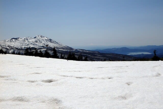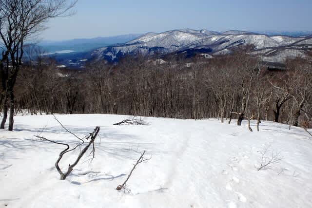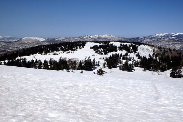 振り返って歩いてきた稜線と本来は湿原の田代平。その奥に昨年歩いた大白森から曲埼山へと延びる裏々岩手縦走路・・・やはり残雪期も歩けそうな気がするね