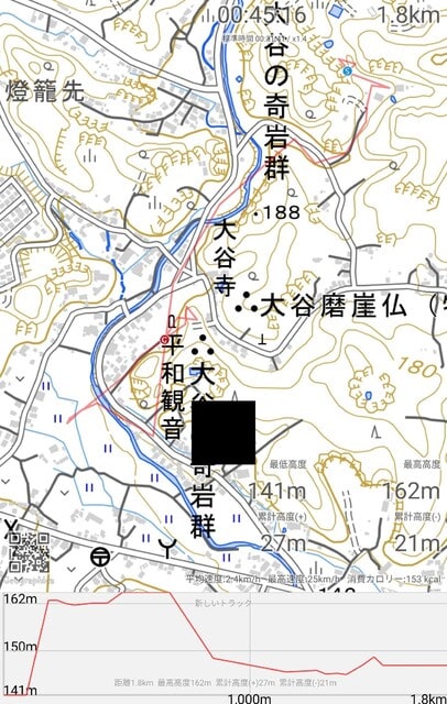 ここが大谷の奇岩群。奇岩というか大昔から岩の掘削がなされた結果こうなった